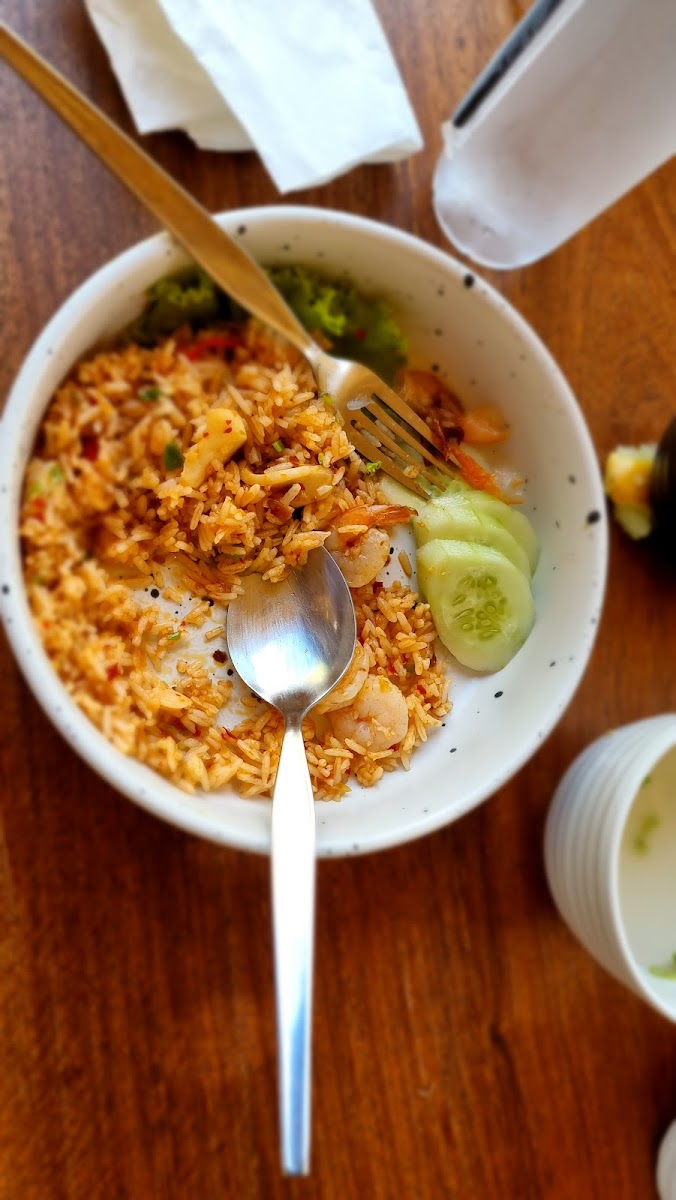 The ambience here is stunning; the cafe is set amidst tranquil rice fields, creating a picturesque and serene backdrop. As you approach, you might wonder if this inconspicuous spot is worth the detour, but rest assured, the surroundings will captivate you, making it a delightful retreat from the hustle and bustle of travel.